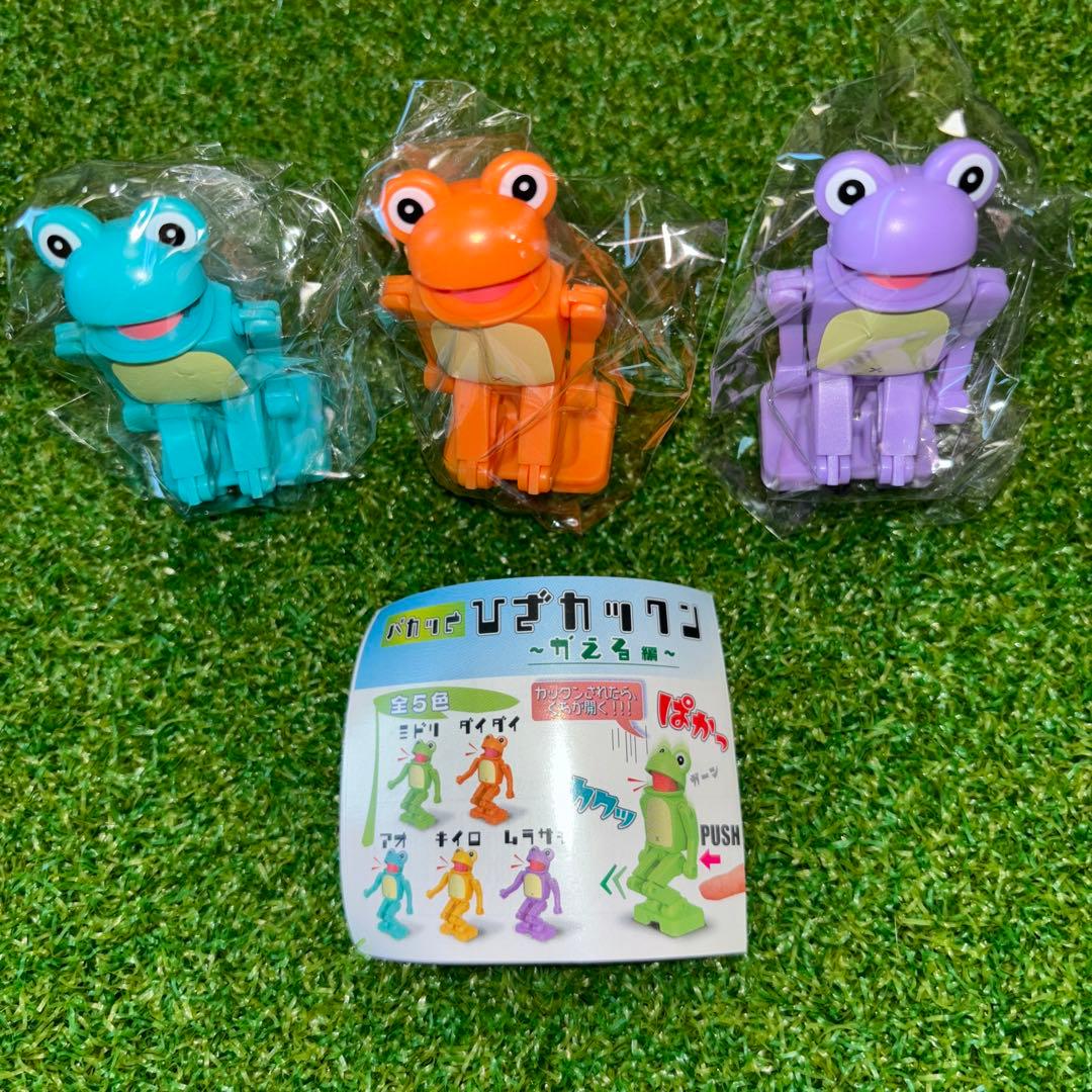 ガチャガチャ 新商品「パカッと ひざカックン かえる編」登場❗, 現在の店頭ガチャ4種類は画像2枚目の通りです。,ひざカックン ,カエル蛙frog개구리青蛙,カプセルトイcapsuletoy뽑기扭蛋自由が丘。