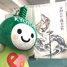 京都市の「エコちゃん」が日本新薬を二条城から応援 都市対抗毎日新聞。