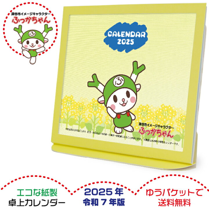 楽天市場 卓上カレンダー 2025年版 ふっかちゃん グッズ エコな紙製 令和7年 埼玉県 深谷市 イメージキャラクター 弊社オリジナルご当地キャラクター 六曜表記 日本製 壁掛け ゆうパケット 全国一律送料無料 : プレスストア。
