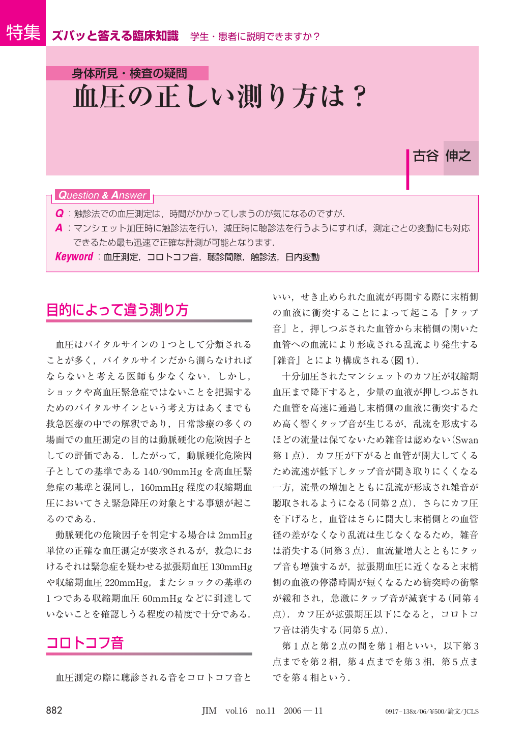 血圧の正しい測り方は?JIM 16巻11号医書.jp。