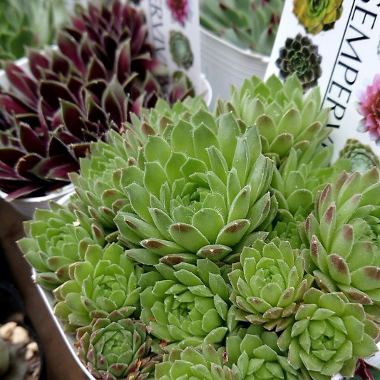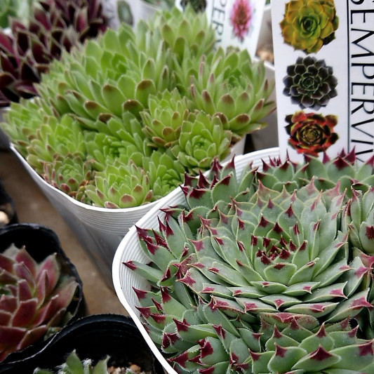 センペルビウムは種類豊富。綺麗な赤紫色や鞠みたいな形をいっぱいに増やしたい。