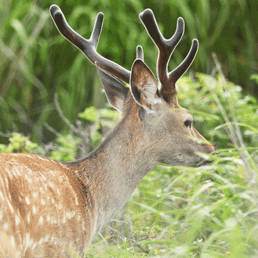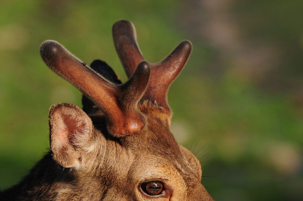 鹿は毎年、"ベルベット"の層の下で角を生やし、その後すべて落とします。これは、ベルベットが最も成長しているときに撮影した、シロオジロジカの雄の写真です。: r interestingasfuck。