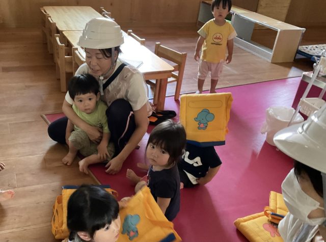 地震だ!避難訓練の様子 0.1.2歳児 ニチイキッズおのうえ保育園ニチイキッズ。