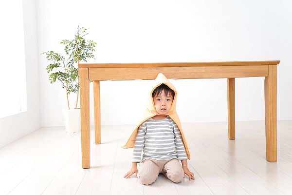 震度6弱の地震が発生しました! 避難訓練- チャレンジキッズ。