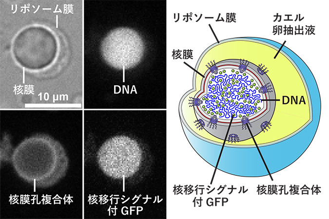 世界初!細胞核機能を持つ構造体を人工細胞内に再現東京大学。