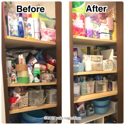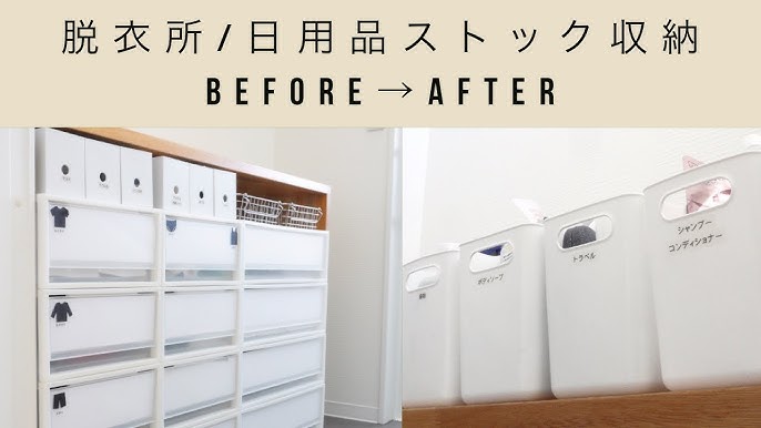 日用品ストック収納 脱衣所 ランドリールーム 洗面所 無印良品・100均を使った収納 before→after。