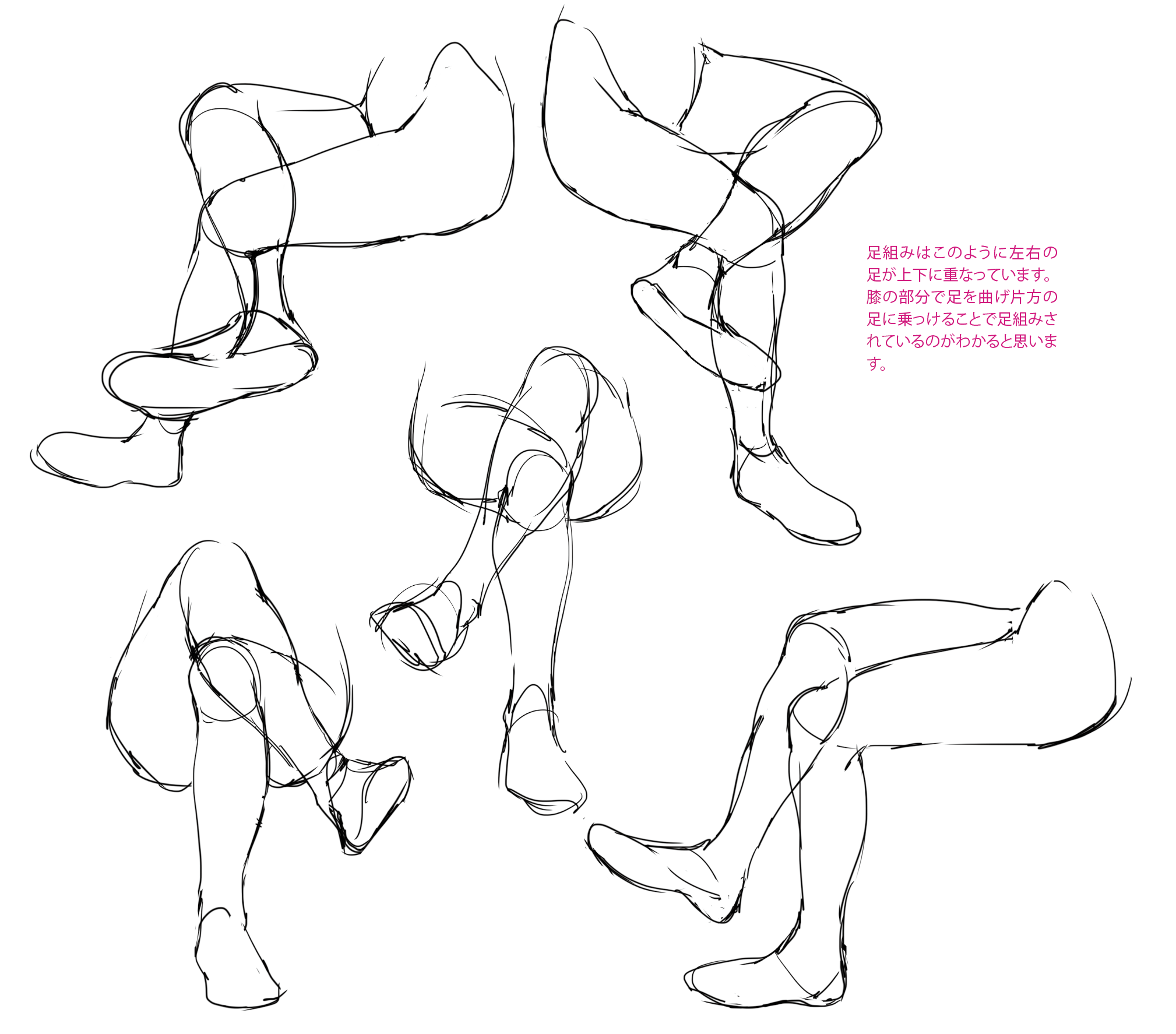 伸ばしたり曲げたりした脚の描き方5つのポイントシジストラボ。