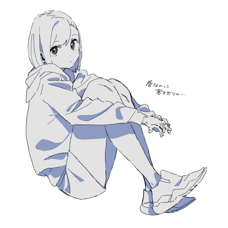 膝を曲げて座った女の子のポーズ集 イラストトレスフリー素材- illust-pose。