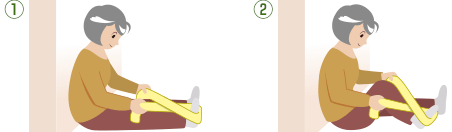 膝を曲げる練習自主トレばんく 筋トレ・ストレッチ・リハビリのイラスト資料。