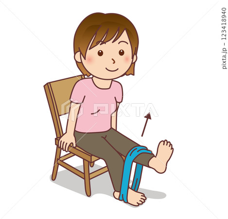 膝の曲げ伸ばし運動をする女性のイラスト素材123418940- PIXTA。