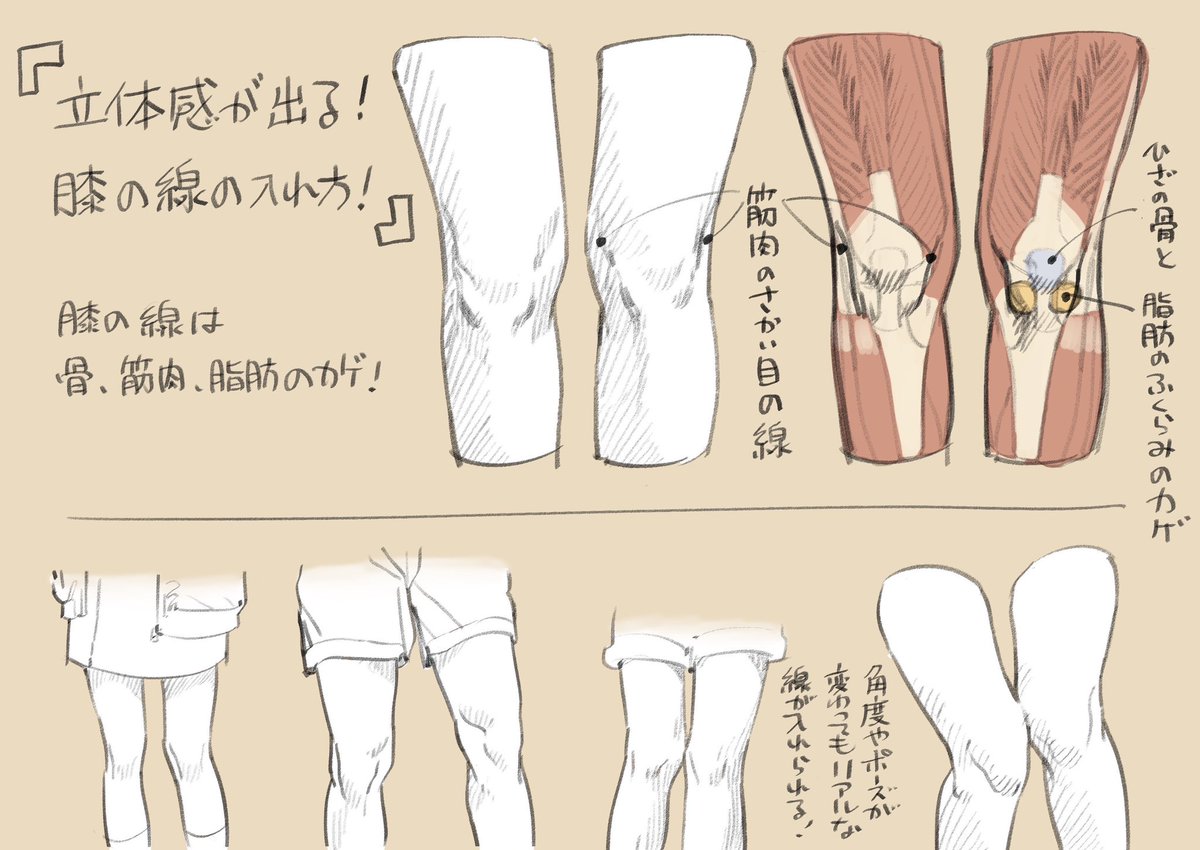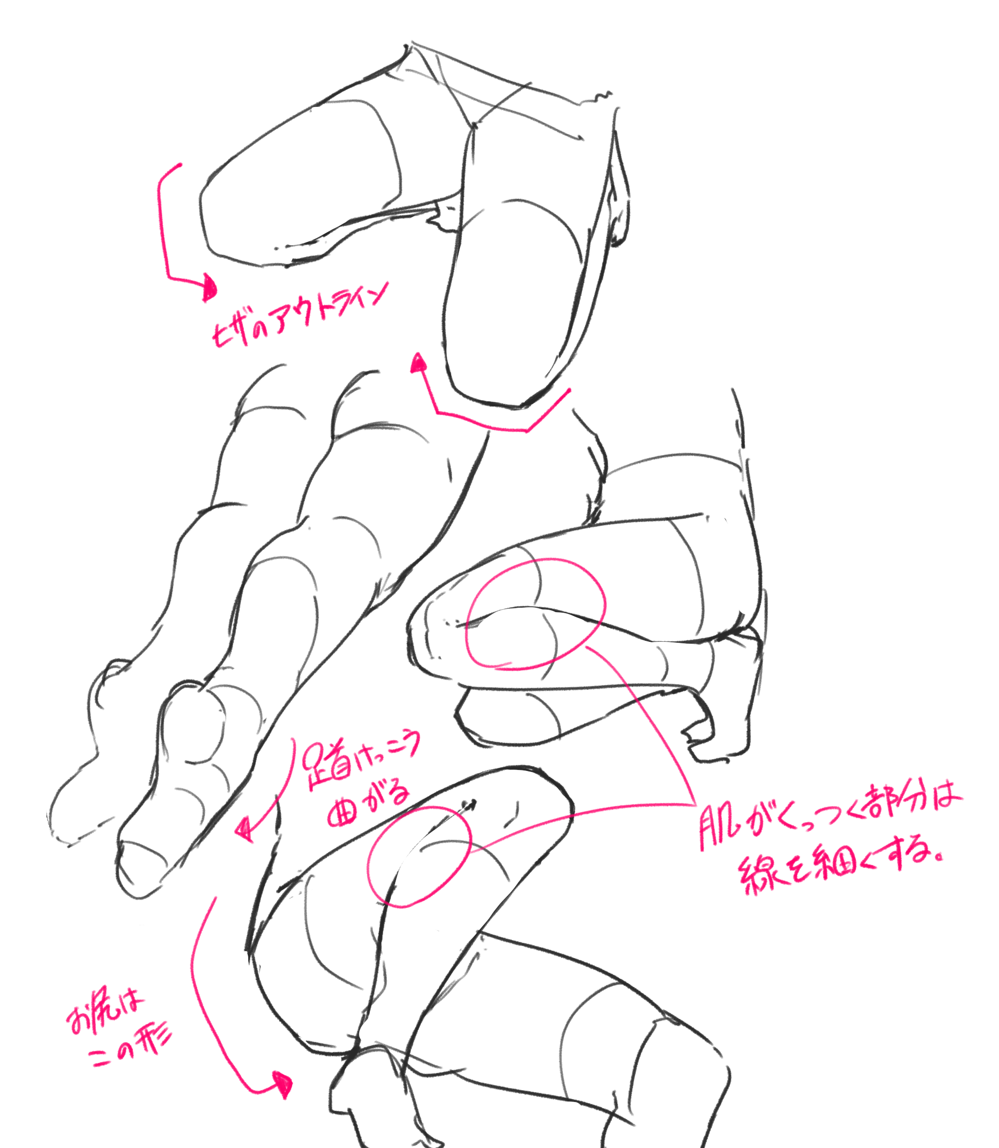 描き方 曲げた膝の形スタディ - 畳のイラスト - pixiv。