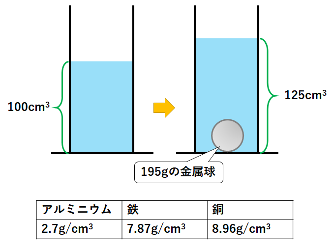 中1化学 密度から物体を推定する実験中学理科 ポイントまとめと整理。