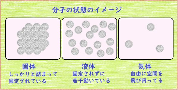 ☆固体 液体 気体☆状態変化で体積、密度はどのように変わる??中学数学・理科の学習まとめサイト。