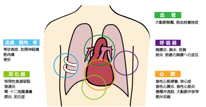 胸の痛み 胸痛よく見られる大人の病気 - みやけ内科・循環器科 家庭の医学。