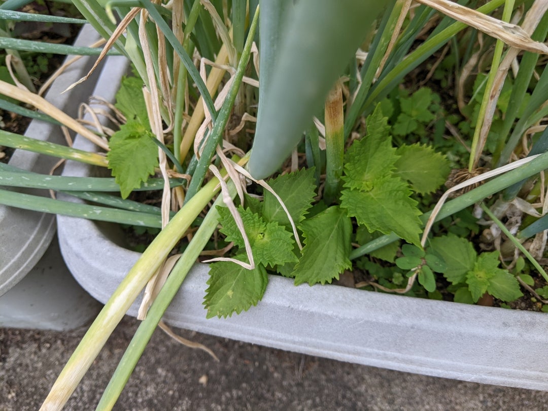 シソ 大葉、紫蘇 がバッタに食べられて丸坊主にされる害虫被害。