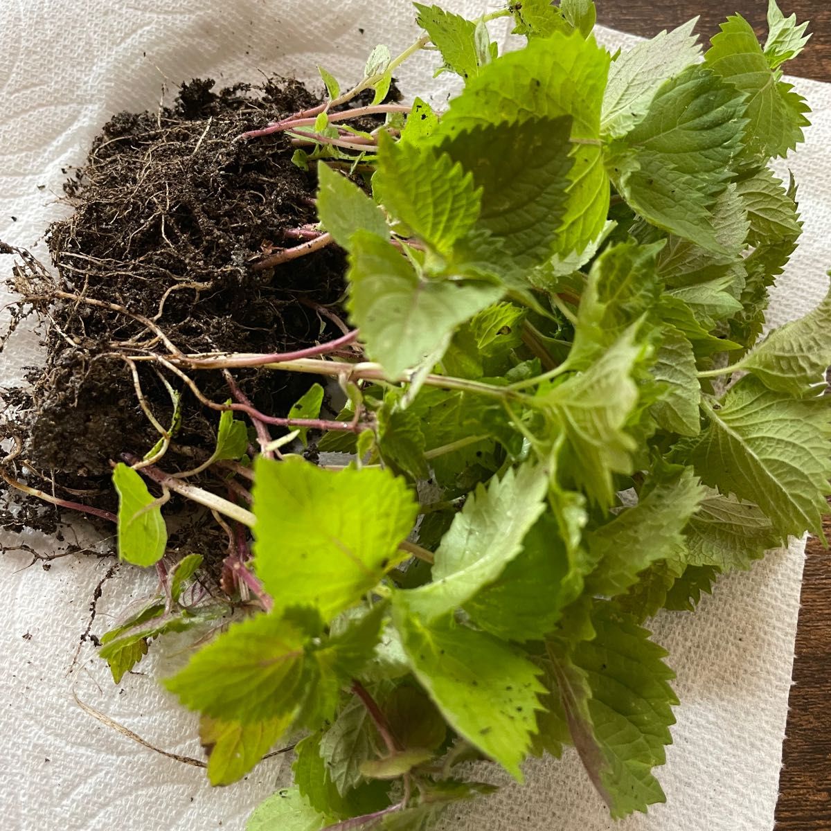 大葉、3本☆大苗1本と赤ちゃんまたは小苗 2.3本、無農薬、抜き苗、薬味 - メルカリ。