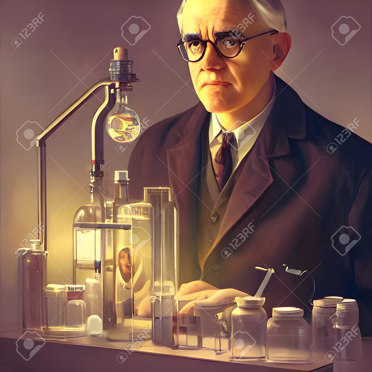 ペニシリンの発見者であるアレクサンダーフレミングの図解された肖像画。高品質のイラストの写真素材・画像素材 Image 193839937。