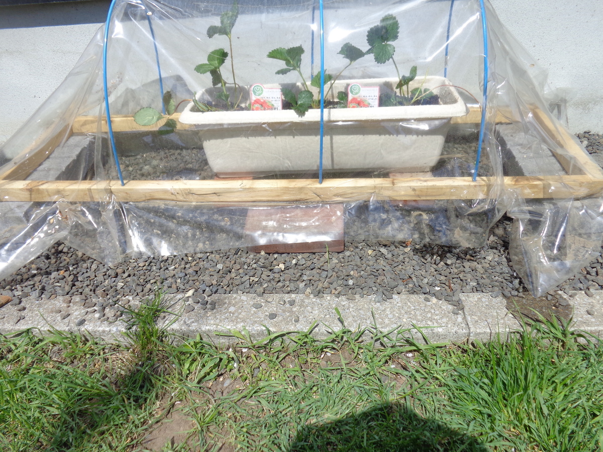 DIY いちご栽培用 『細長い』コンパクトなビニールハウス4段高設棚②。