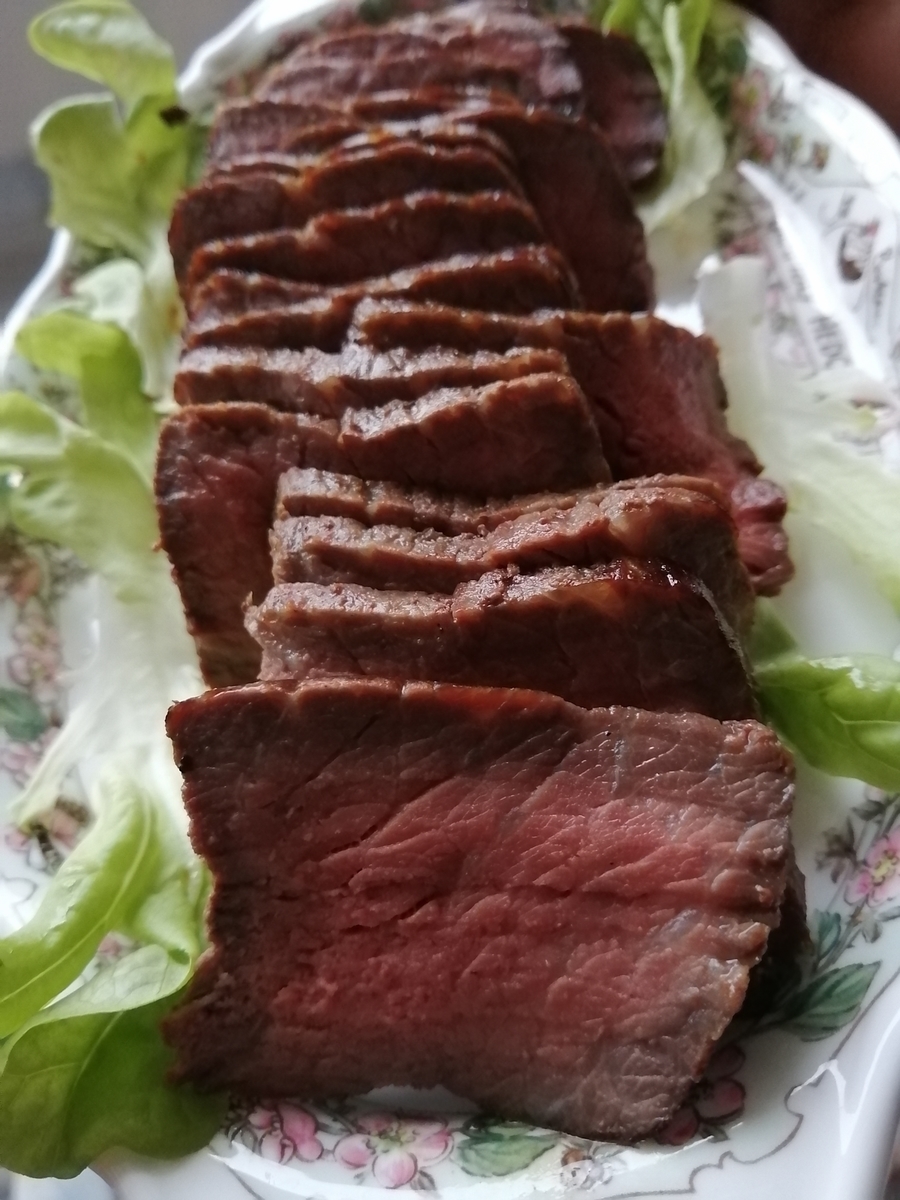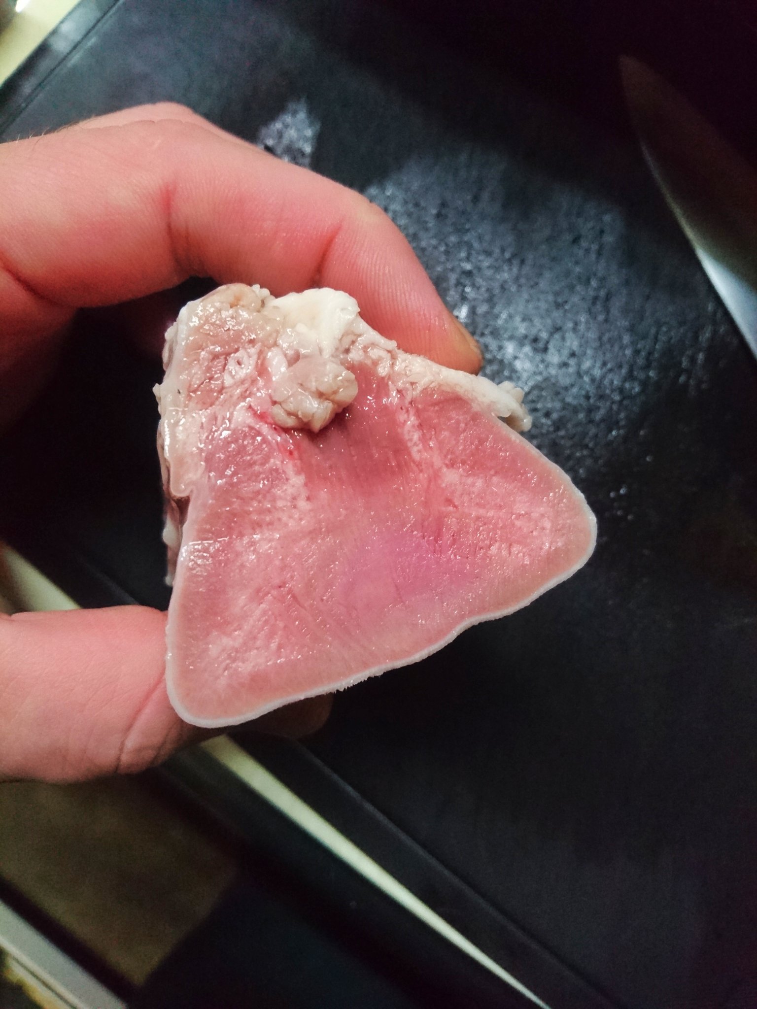 豚タン燻製の手作りレシピ低温調理ともろみ生ジャーキ。