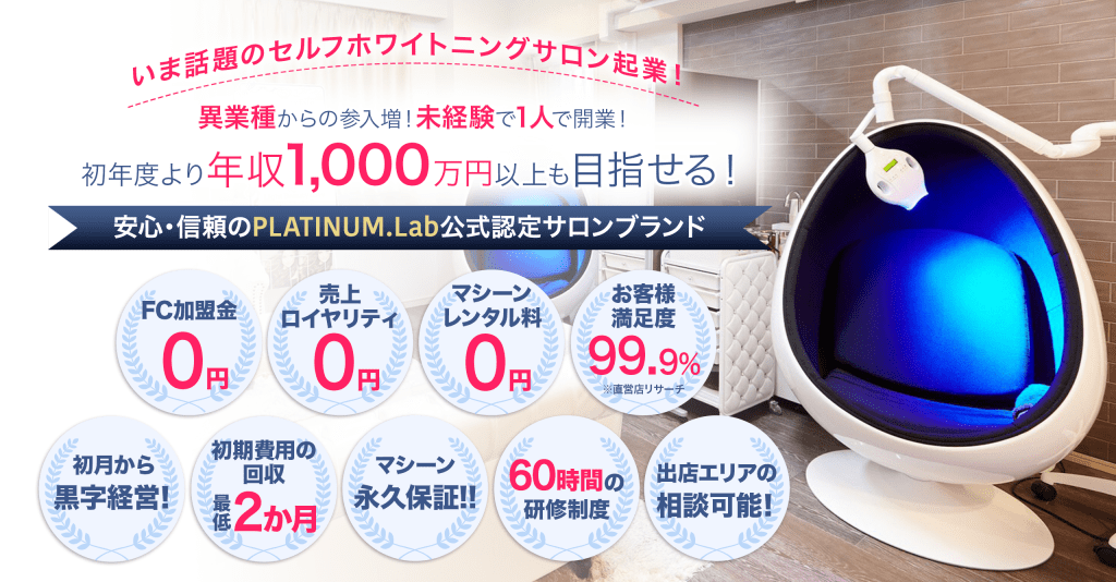 美容サロンとは?種類や特徴、開業のしやすさを分かりやすく解説 -公式 セルフホワイトニングサロンの加盟店・導入店募集サイト PLATINUMLab。