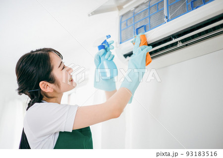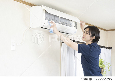 エアコン掃除をする女性 - No: 23042461写真素材なら「写真AC」無料 フリー ダウンロードOK。