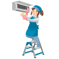 エアコンクリーニングをする女性のイラストエコのモト。