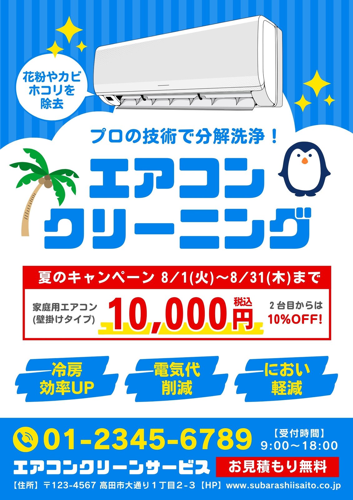 エアコンクリーニング無料テンプレートデザイン。イラストや画像付きも豊富 - Canva キャンバ。