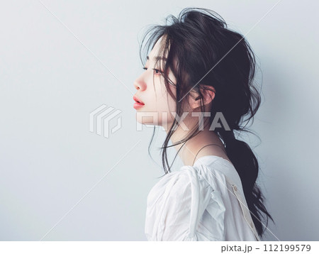 柔らかい光に包まれたアジア人女性の横顔のイラスト素材112199579- PIXTA。
