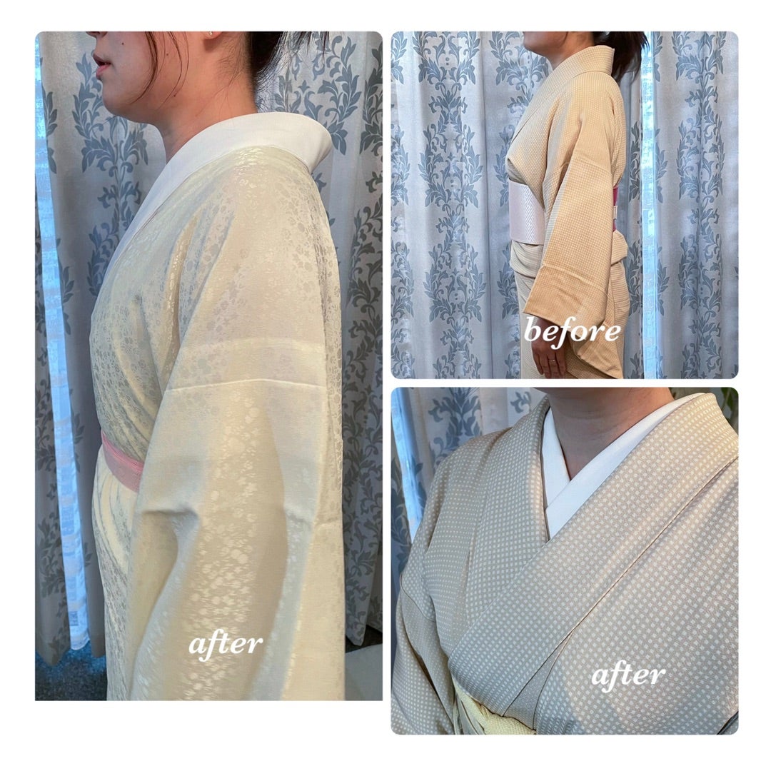 ぽっちゃりさんで着物を着るとさらに太って見えるので、もう着物には縁がないと思っていたそうです。が、この補正を使って目から鱗が落ちたそうです!着物着た方が細っそり見えて更に驚きだったそうです。,間もなく「千式・パーソナライズ着付け講座」がオンラインで始まります。ぽっちゃりさん、ガリガリさん着付けや着姿でお悩みの方はプロフィールのリンクからお問い合わせください。,↓フォローもお願い致します↓,。
