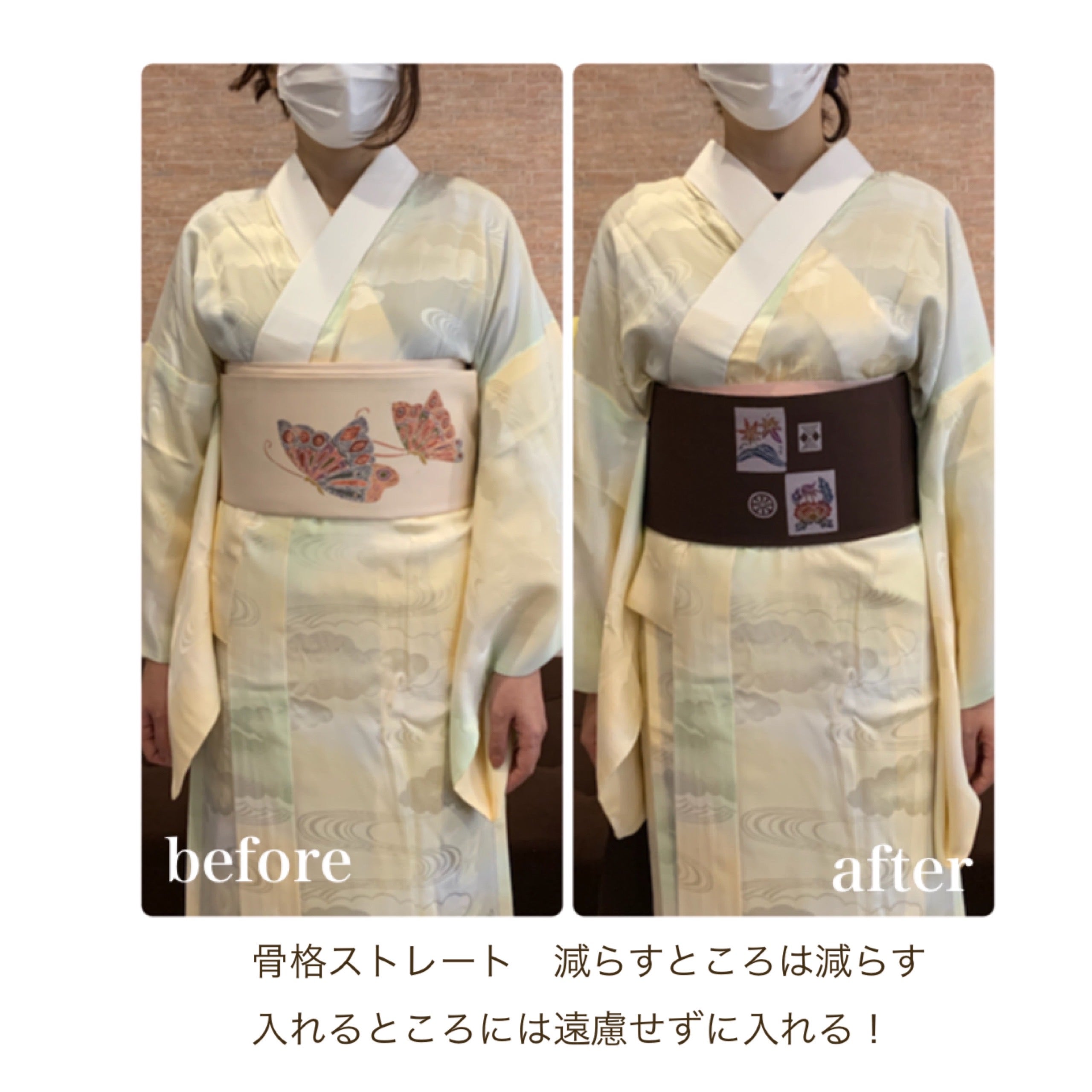 着物を着ると太って見える、、、のがお悩みでした。東京青山 『着物パーソナルカラー診断』『顔タイプ診断』『着物骨格 診断』であなたの「似合う軸」から素敵な着こなしをアドバイス。