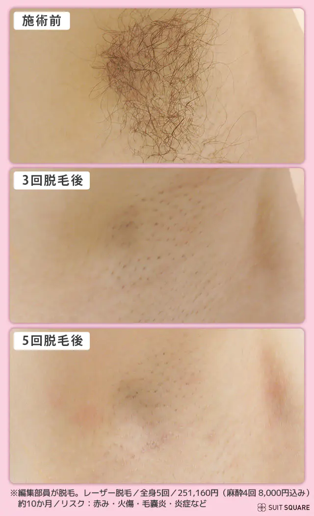 湘南美容外科 ワキ脱毛3回目 の効果を写真で公開。