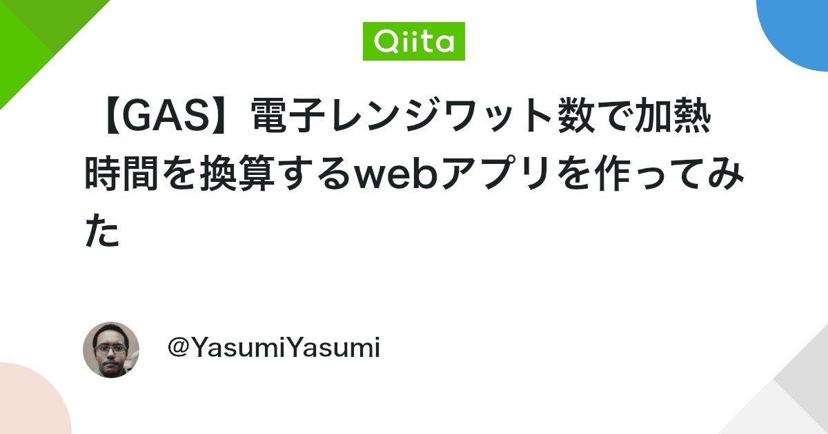 GAS 電子レンジワット数で加熱時間を換算するwebアプリを作ってみたGoogleAppsScript - Qiita。