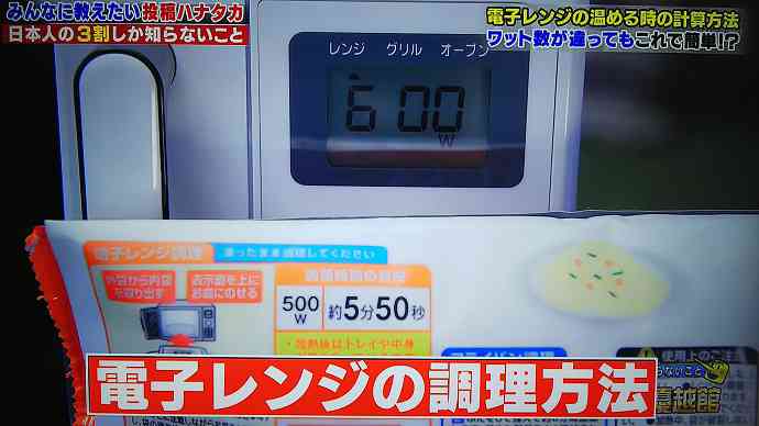 500Wのレンジで3分は、600Wで何分」は計算できる! かけ算とわり算でできる換算法に「そんな単純計算で合うのか 」の声Infoseekニュース。
