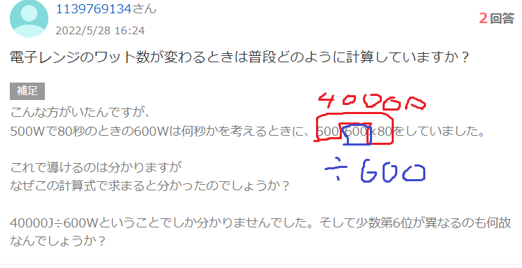 電子レンジのワット数が変わるときは普段どのように計算していますか? - Yahoo!知恵袋。
