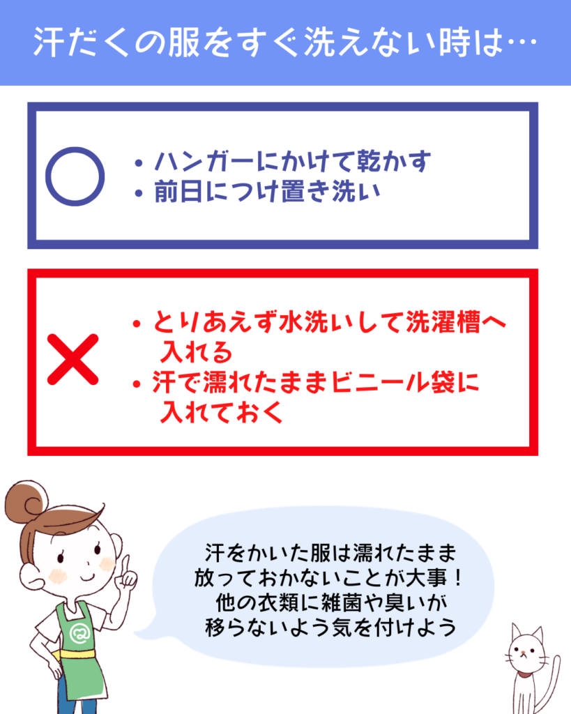 汗をかいた服をすぐに洗えない時の対処法こころあらうキレイのおてつだい 宅配クリーニングのココアラ cocoara。