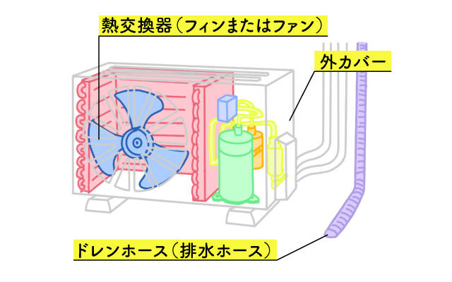 室外機の掃除のしかた まわりや外側、アルミフィン水抜き穴・ドレンホース掃除解説HPB 空調・エアコンのお役立ち情報。