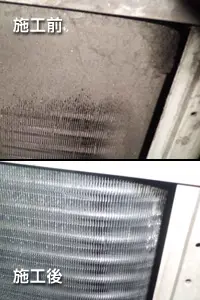 施工事例:エアコン室外機の洗浄鹿児島・宮崎・佐賀 工場工事・メンテナンスセンター.com。