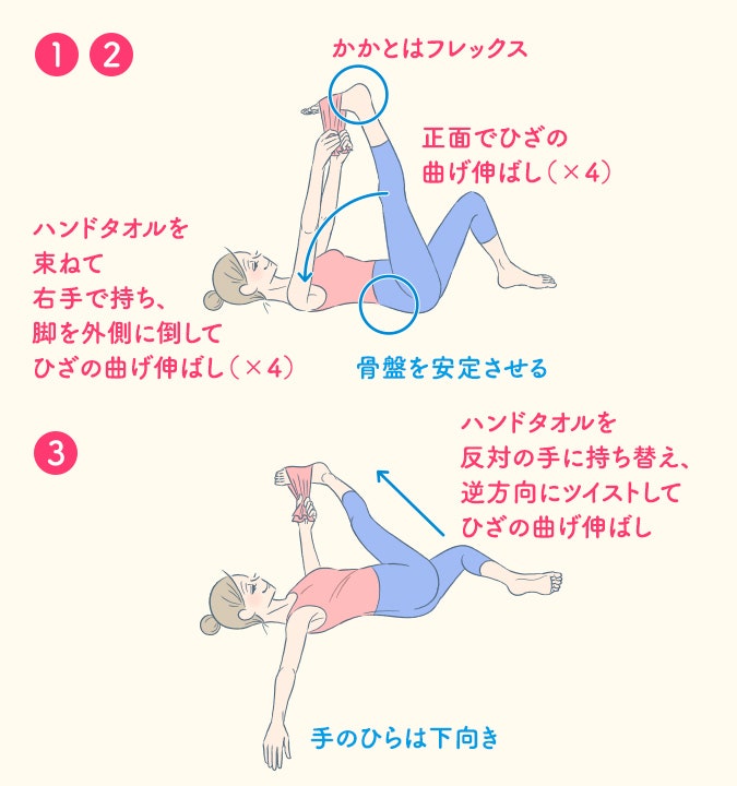 寝ながら脚痩せ」わずか3分のストレッチが話題「埋もれた膝が見えてきた!」CHANTO WEB。
