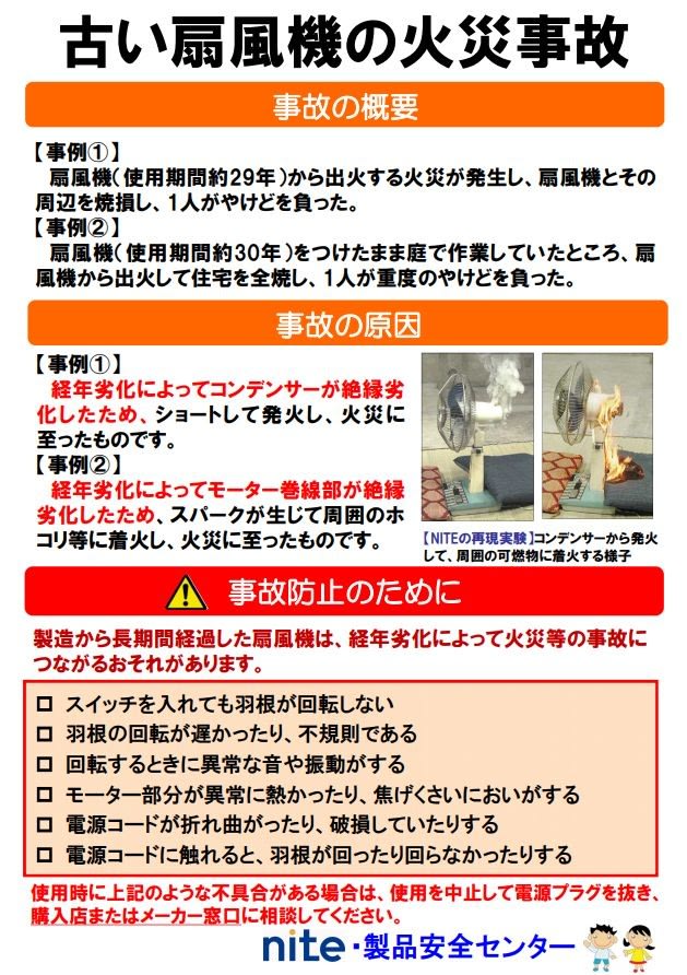 「動くからいいか」は危険!古い扇風機やエアコンは火災の原因になることも 焦げ臭いにおいや異音がしたら要注意。