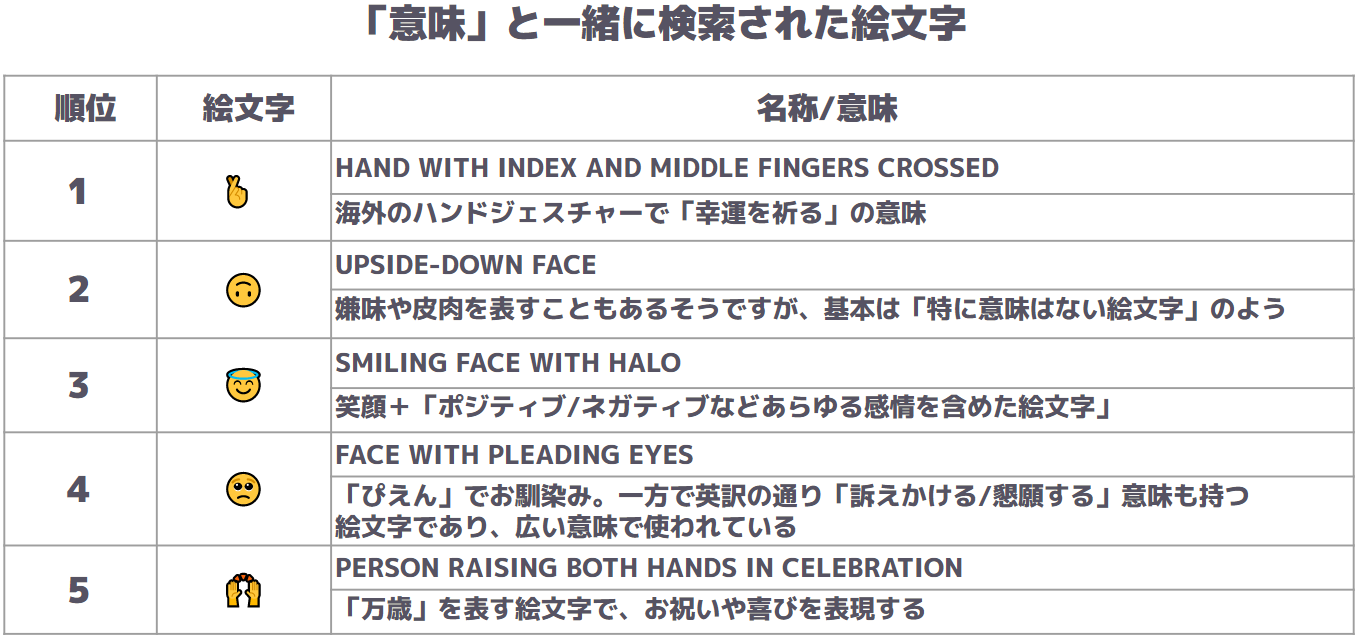みんなの知らない「絵文字」の世界――多くの人が意味を知りたがっている絵文字のランキング、ヤフーが発表 - INTERNET Watch。