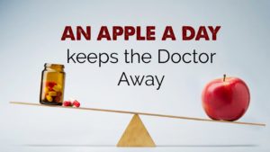 An apple a day keeps the doctor away 「一日一個のりんごで医者いらず」。