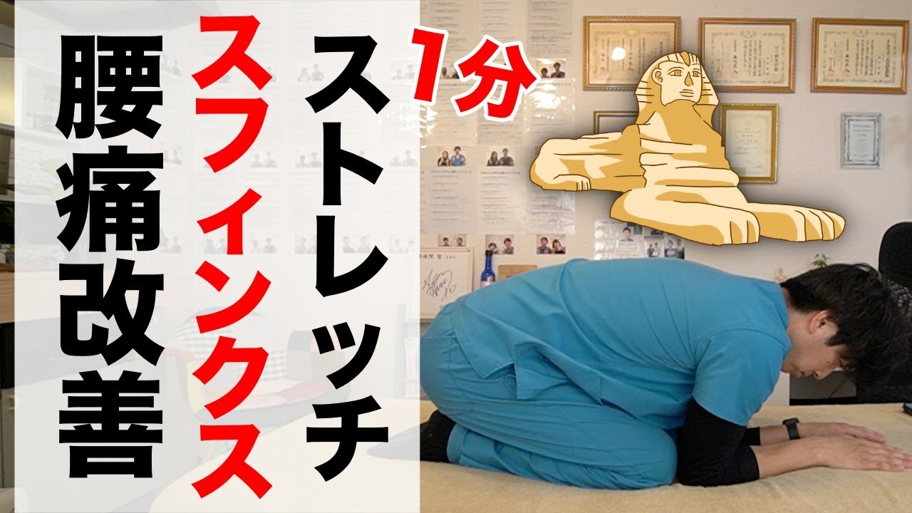 腰痛改善 スフィンクスストレッチ!寝る前1分のナイトルーティンで坐骨神経痛も改善♪。