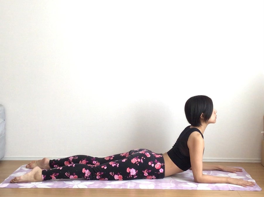 英語ヨガ もも・肩・お腹を伸ばす「スフィンクスのポーズ」 日本語字幕付き姿勢から美と健康を引き出す 美宅玲子のブログ。