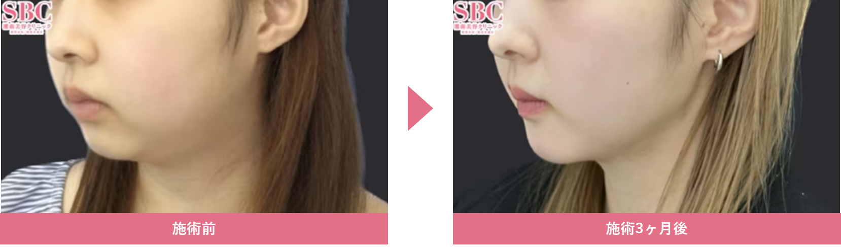 一回の施術で悩みだった下膨れ顔が解消しました!こちら1day小顔脂肪吸引の処置前と1ヶ月後の症例です 30代女性美容整形クリニックACLINIC 公式。