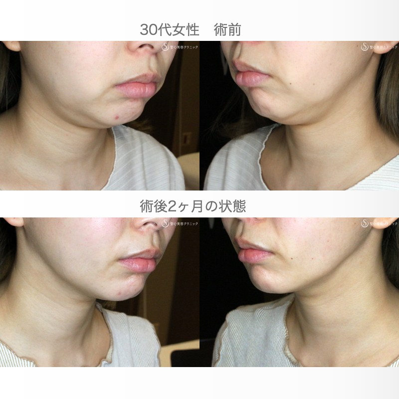 30代女性・二重アゴ&下膨れの解消 頬&あご下ベイザー脂肪吸引 術直後〜2ヶ月後- 症例写真 - 美容整形、美容外科なら聖心美容クリニック。