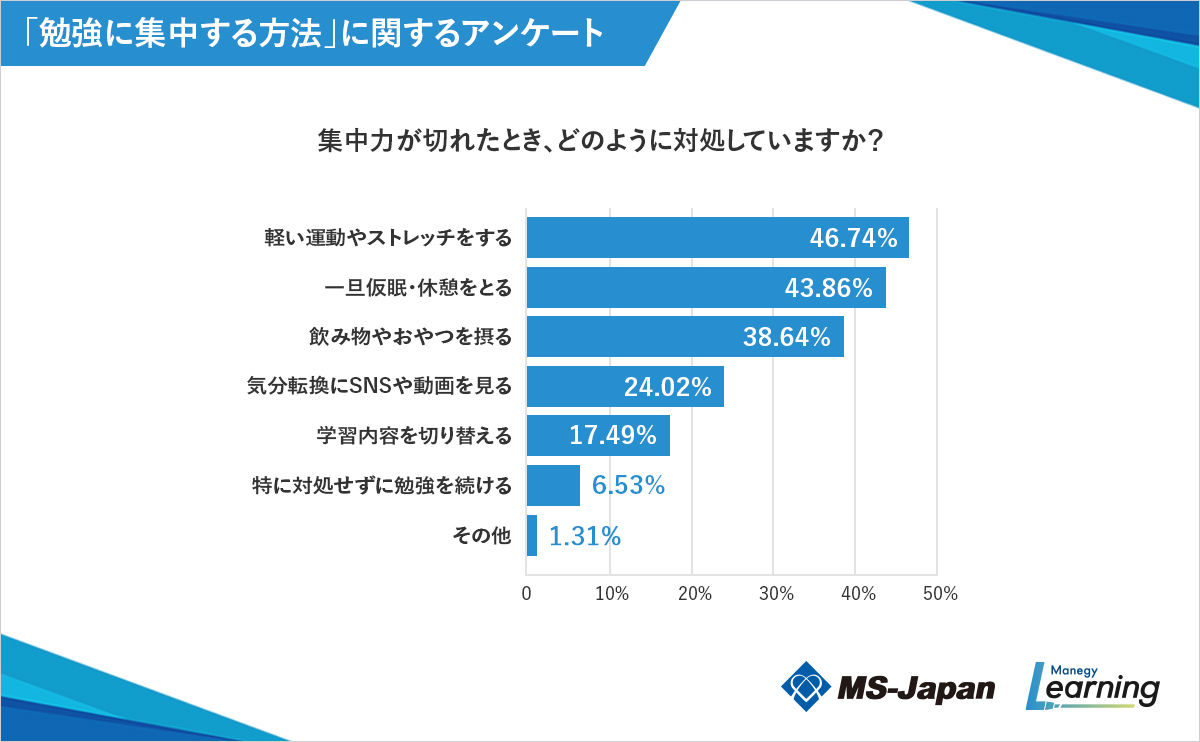 特に何もしない人が最多!? 「勉強に集中する方法」についての調査結果。