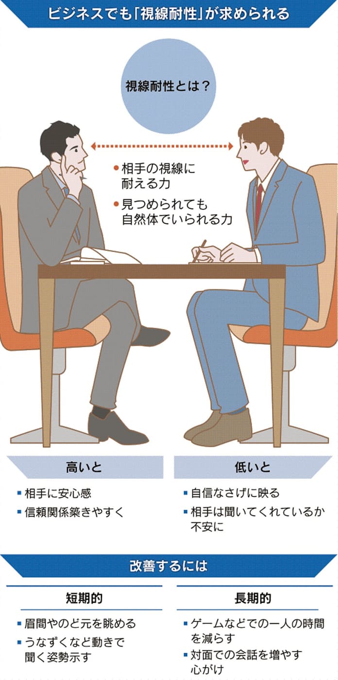 相手の目を見て話すのが苦手「視線耐性」の高め方 - 日本経済新聞。