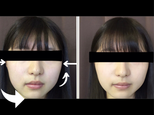 顎の歪みが気になる女性を小顔矯正 before&after 顔解説- ゆうき式小顔矯正。