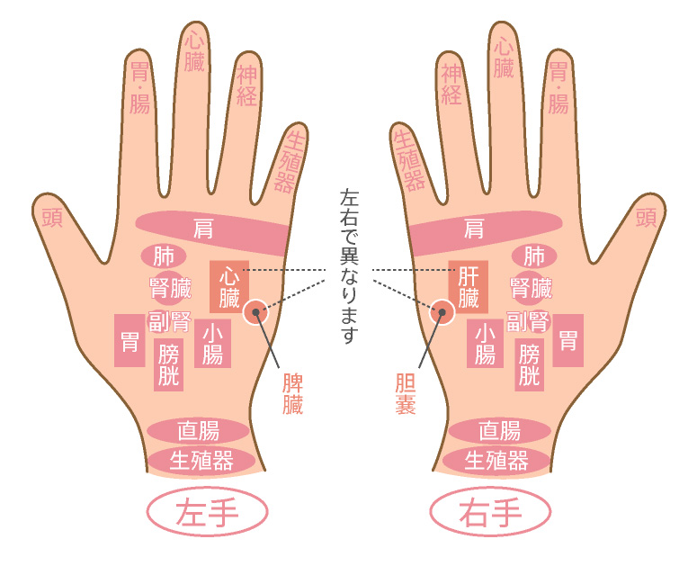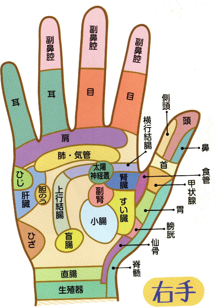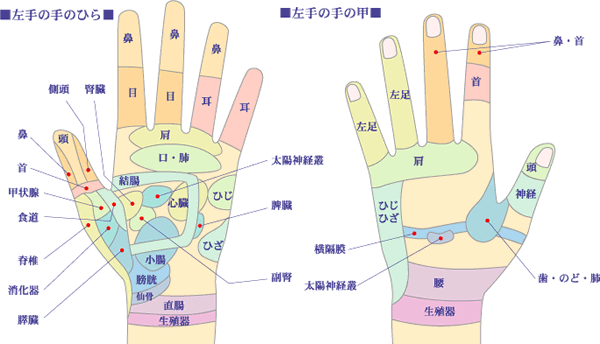 手のツボと反射区の違いは?全身の反射区と症状別「手のもみ方」大公開!ニフティニュース。