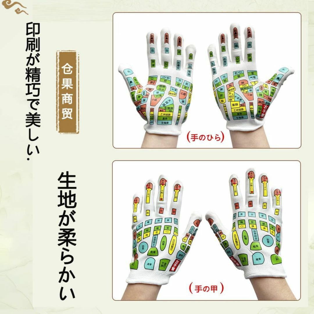 ツボが見える手袋 ツボ押し 手袋マッサージ 両面印刷ツボ 手ツボ 柔らかい 通気性 ストレス解消 マッサージ 肌に優しい 手のひら マッサージグローブ。